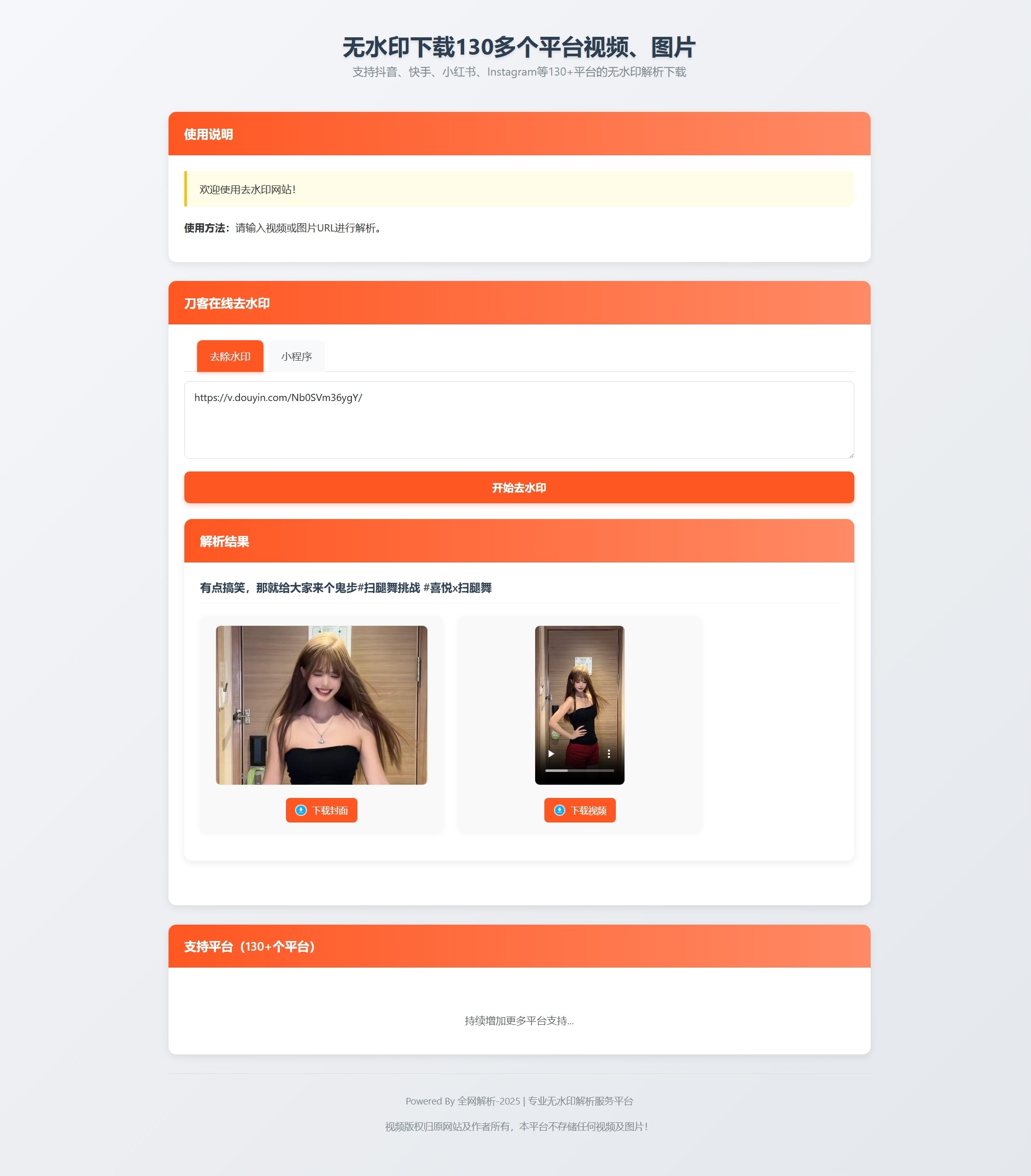 最新聚合短视频解析去水印系统源码 带后台 自适应双端 轻量化 全开源 亲测可用