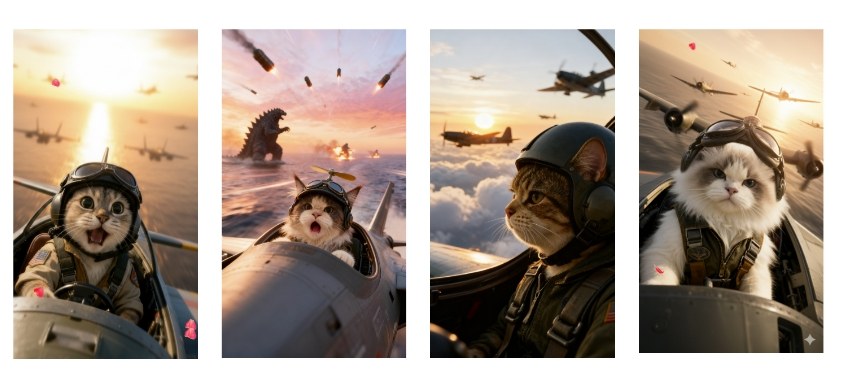 家人们,快系好安全带!史上最萌王牌飞行员——喵喵飞行员前来报到啦!它戴着炫酷小风镜,驾驶超音速战斗机,为守护自己的猫窝大战哥斯拉!这场跨越体型与物种的史诗级对决,既惊险又充满可爱暴击。你准备好围观这场“喵”不可言的空中大作战了吗?