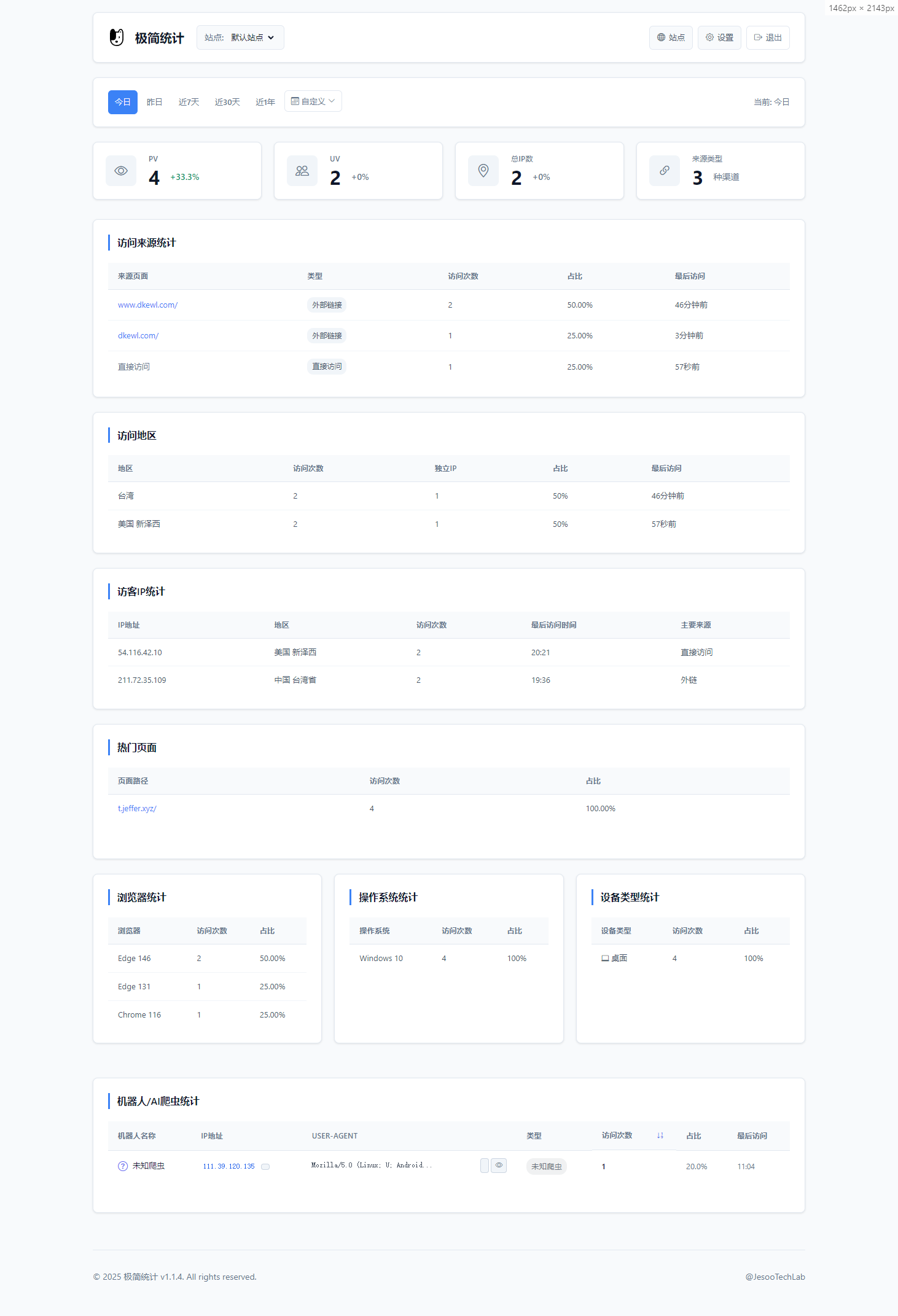 基础数据:PV、UV、IP、来源、地区、设备统计